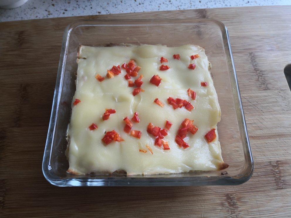家里没有马苏里拉,放的芝士片,也一样好吃。