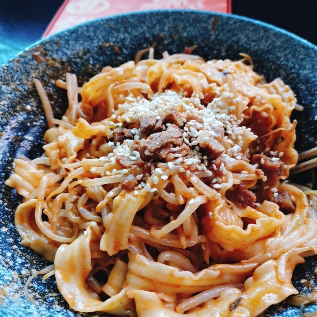 wenddddddie↪1994 做过 拉面说脆脆肉酥拌面 #午餐•2020年4月9日# 太饿了,上午线上预答辩弄到好迟拉面说初尝试,是拌面系列~包装豪华,但是还真的蛮好吃看之前有些评论说太油腻~我加了很多豆芽蔬菜进去,所以还好辣味不是很浓,藤椒味重,还有厚重的芝麻酱,很香猪肉脆酥酥的 2020-04-09