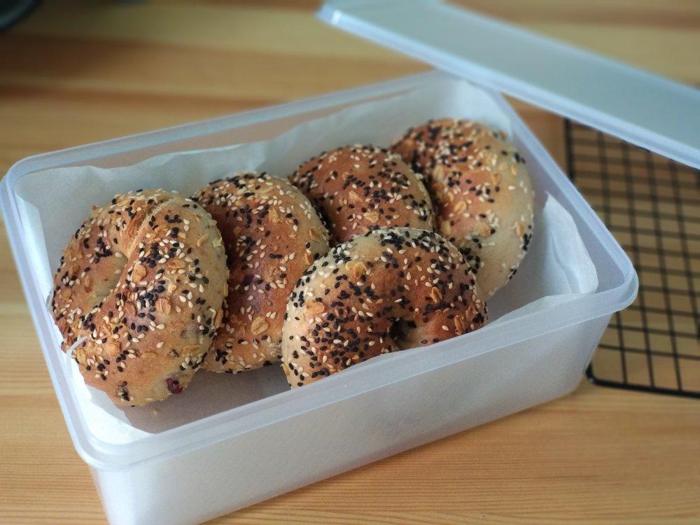 交个作业先,面团里格外加了点蔓越莓蓝莓混合干果和燕麦麸,味道依然很棒