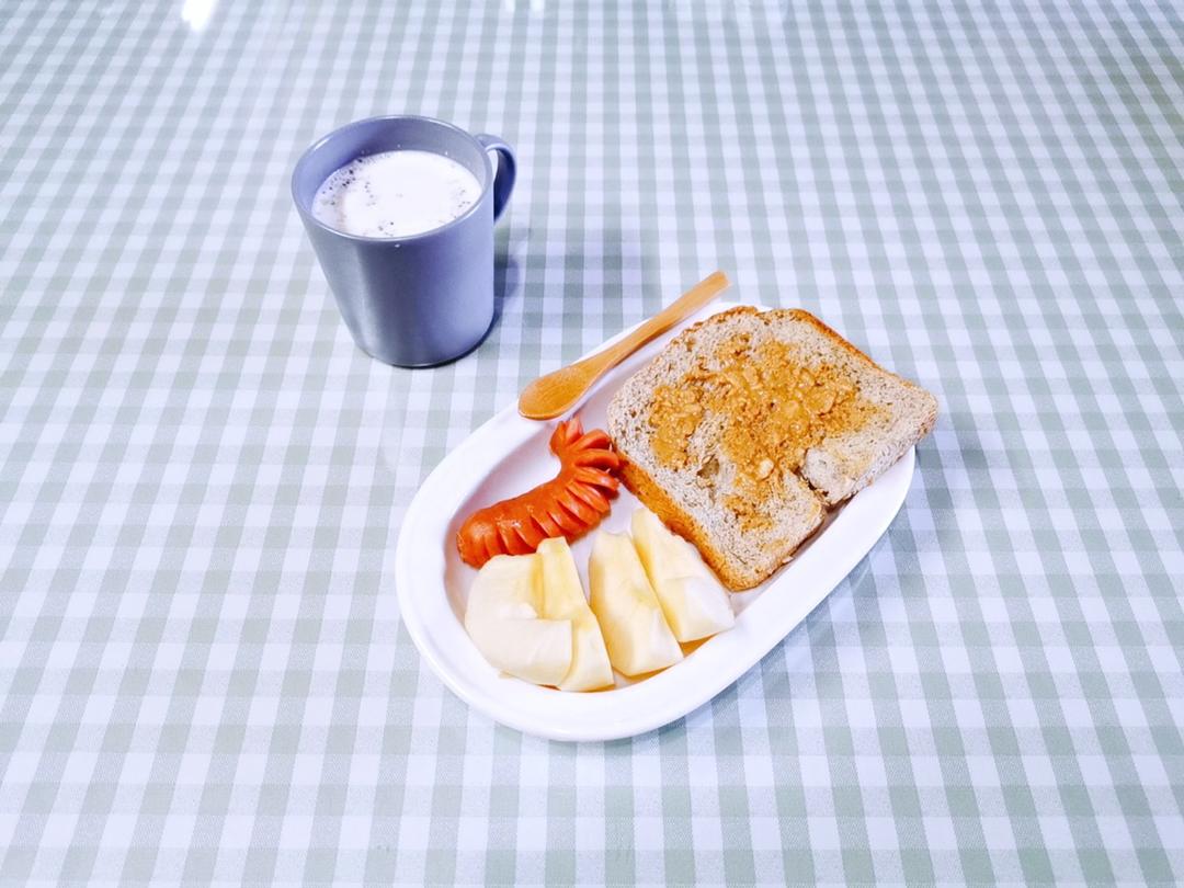 花生酱黑麦吐司 | 香肠 | 苹果 | 奇亚籽燕麦牛奶