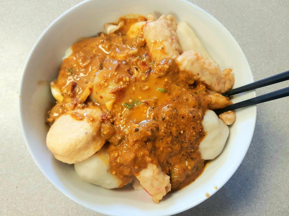 小祁nicooo 做过 午餐•2020年4月16日 炒了点火锅底料 然后盐糖孜然黑胡椒葱蒜芝麻酱都安排上就可了!顺带把我冰箱里剩下的丸子给解决了😂#午餐•2020年4月16日# #一人食# 2020-04-16