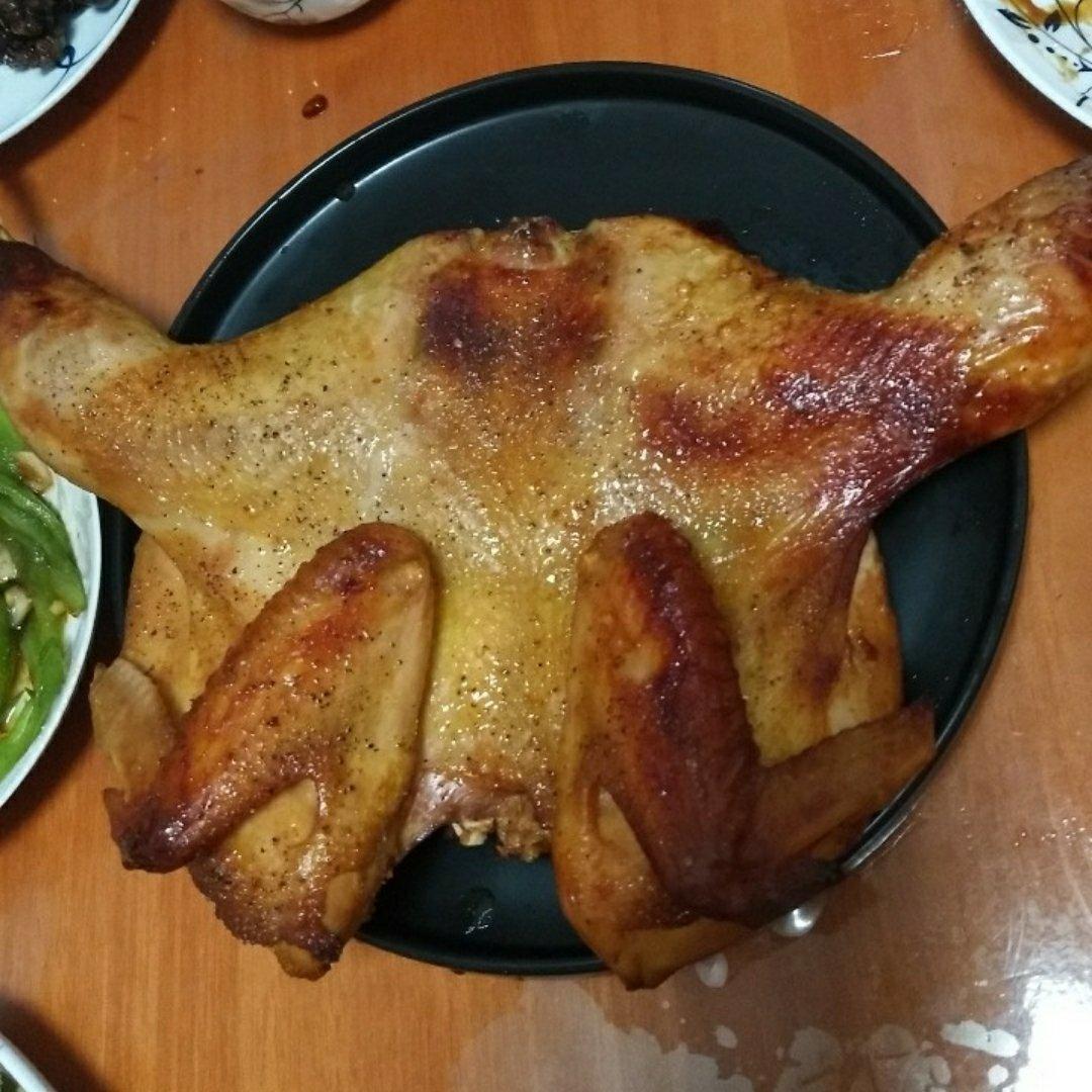 誠誠媽咪 做过 袋袋烤鸡--自制腌料+脆皮秘籍 差不多提前三十四五个小时腌制的,没有红甜椒放了一点辣椒粉😁️,腌制入味。没有买到三黄鸡,一般的土公鸡烤三斤一两重,烤了一个小时肉嫩但没有达到酥皮的地步,味道很好,成功!!!✌✌✌ 2020-04-17