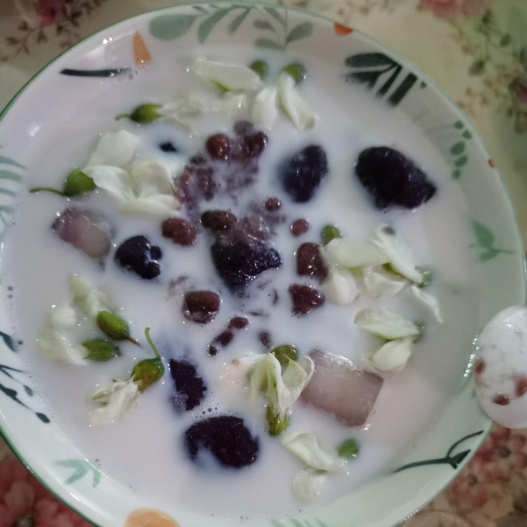 春日♥槐花芋圆蜜豆牛奶。