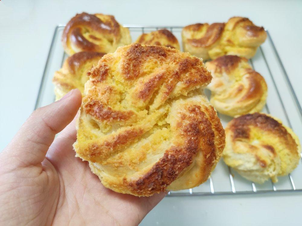 太难了,我造型太丑了……方子没问题,看似放了好多糖,最后甜度对我而言居然很合适。我怕个头太大,自作主张弄成了8个,幸好28厘米正方形烤盘能放得下!这个配方跟我以前做过的差别在于它的水份少一些,和面后那么干,我一度以为我手揉肯定死了,会失败出不了手套膜,结果居然妥妥的没问题。最近天气热,我有提前把面粉冷冻着,要用的液体也给冷藏着,担心揉太久面团温度过高影响发酵。#晚餐•2020年4月17日#