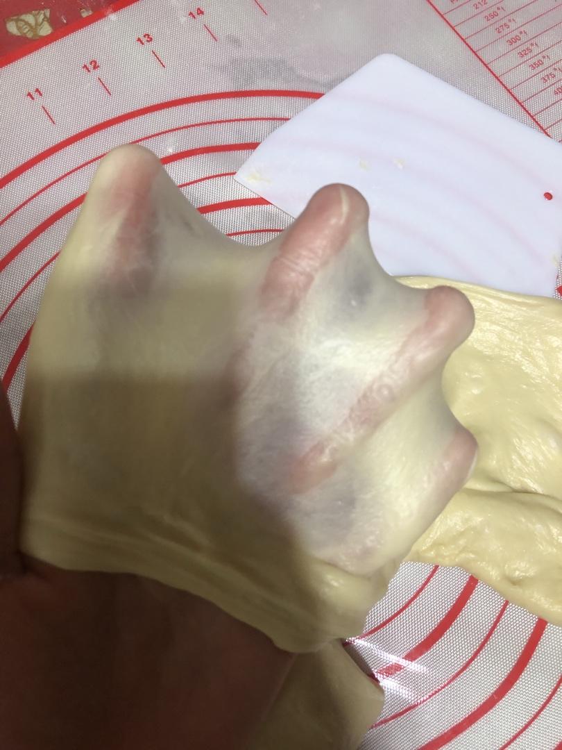 我用210g面粉配了170g左右的豆浆+鸡蛋,面包机两个阶段花了50分左右出了手套膜,但是面团很湿很黏。发酵时都是不成团的,而且发酵了一个小时,插进去的洞塌陷,面团超级湿,感觉变成了面种,黏得手上全都是,无奈又加了粉放回面包机回炉,变成扩展了,最后靠手揉出膜,还是有点小黏,足足花了我7个小时,不知道哪个步骤出错