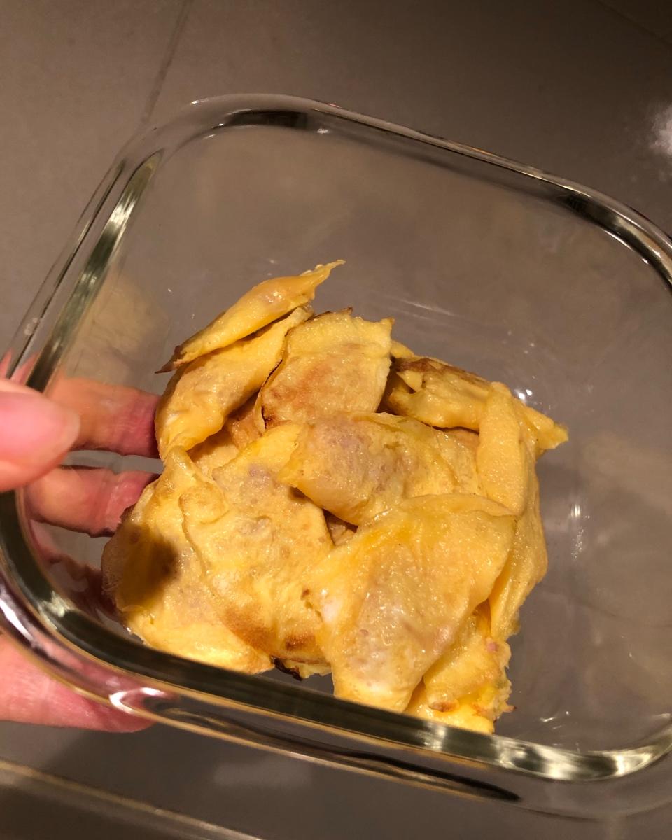 cherry籽籽 做过 只需一个勺2步就能轻松搞定的蛋饺 一个蛋+5g玉米淀粉+8g水,调成蛋糊猪肉47g左右,剁成泥加少许姜末,少许盐调匀。勺子刷油,注意特别是边缘要刷到位,加热后加入蛋糊,一半蛋凝固后再加入猪肉。熟能生巧。这么点料做了将近20个蛋饺,够吃一阵子了。#晚餐•2020年4月18日# #辅食辅食# 2020-04-18