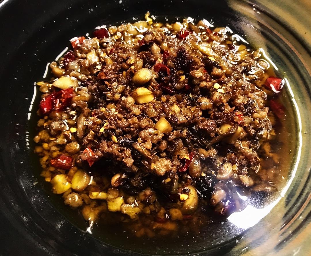 3月的某天,炒了一大锅鲜松茸菌牛肉末酱,装了四瓶