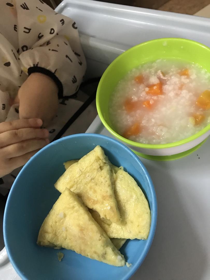 红萝卜淮山瘦肉粥+土豆鸡蛋饼