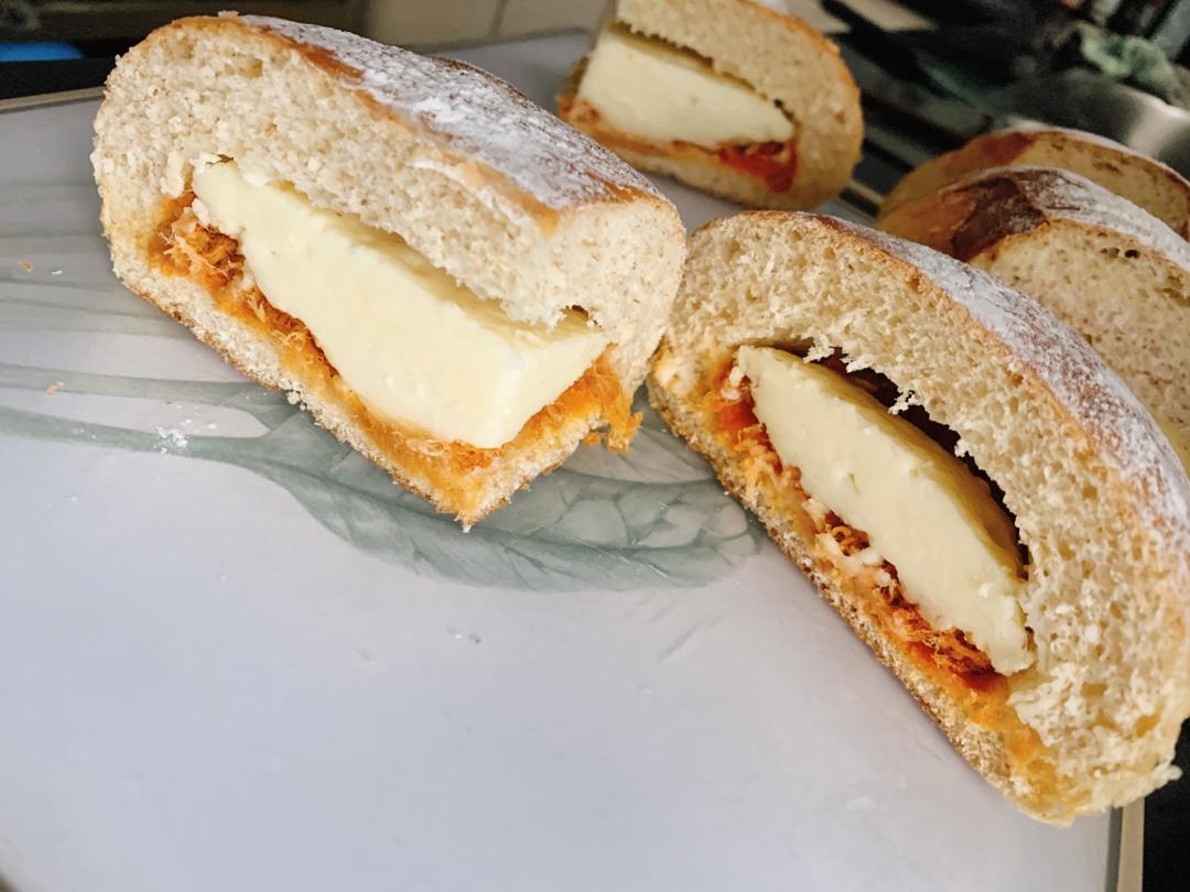 面包体是按配方做的,柔软,仅剩的乳酪和芝士做了馅料