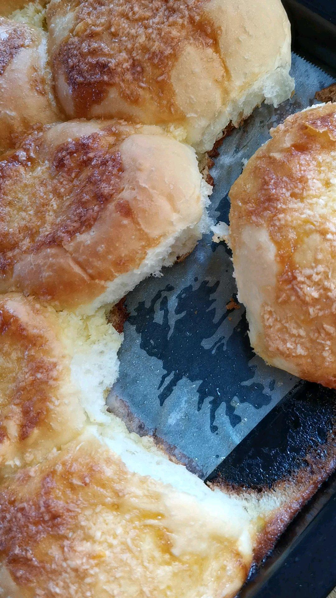 sandrass 做过 椰蓉面包(不用厨师机也能做面包,附手揉视频) 不知是不是酵母放多了,发的太大了,而且拉丝感觉也不咋地,关键是按照方子做的,竟然一点儿都不甜,不知道为什么,而且我的椰蓉酱特别稀,淋在🍞上都流到烤盘里了。味道倒是还可以,希望有烘焙达人可以指点一下。感谢 2020-04-20