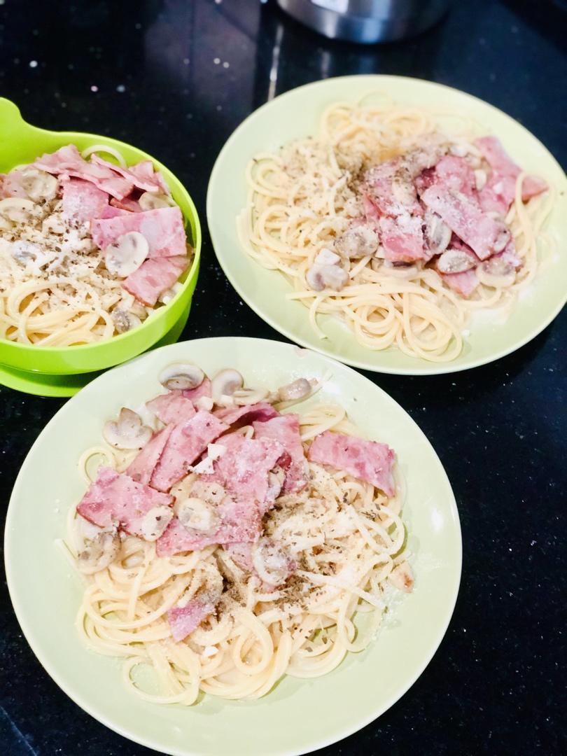 白蘑菇奶油培根意面