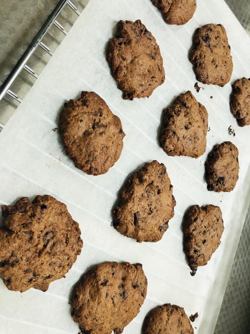 i风影cc 做过 熊谷裕子亲授巧克力曲奇 材料都是易得的 手边就有的 操作也很方便 造型淳朴的饼干 悲催的事 放入干性材料时忘了放泡打粉和盐 😂 可是已经搅拌完成了 就赶紧加泡打粉 随便搅了几下 真怕搅拌过度 如果没有操作失误 应该是更酥脆的 反正老公是很喜欢的 2020-05-06