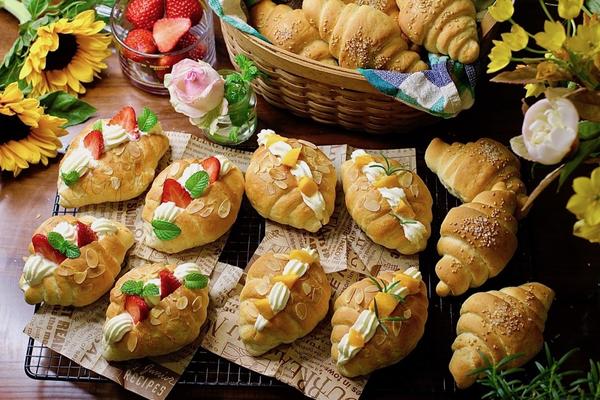 【一次做多种口味汤种面包】鲜奶油水果面包卷与咸黄油面包卷