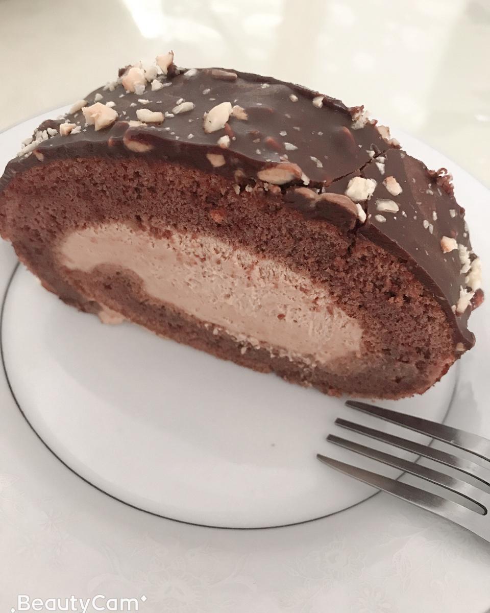 文文是食神 做过 巧克力梦龙卷 用了12寸方盘烤的蛋糕坯。厚度很合适。奶油太好吃了。口感顺滑像在吃冰淇淋。巧克力淋面没有那个什么脂。用了等量黄油代替。真的太好吃咧。哈哈。淋面只用了方子一半的量。我觉得也还可以吧。大家看图。就是切不好。巧克力都碎了。热刀也不行。求大神指点 2020-05-11