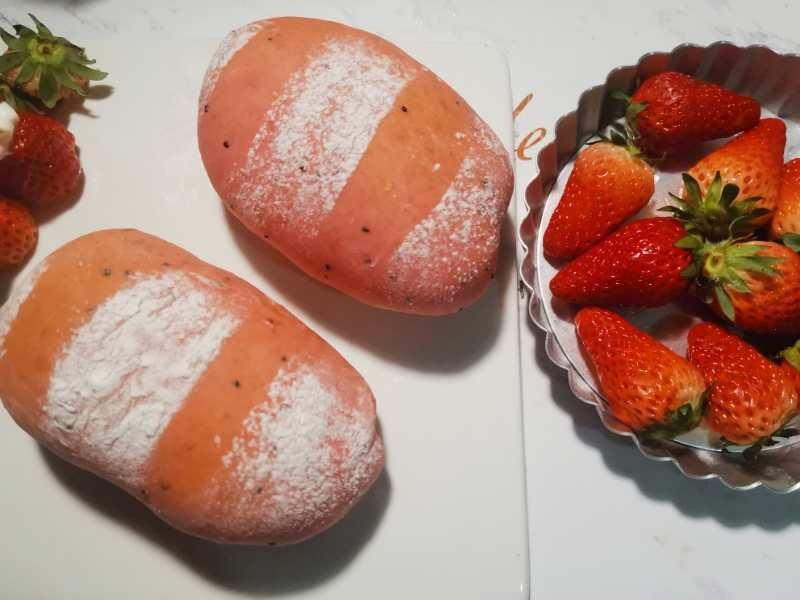 火龙果奶油草莓面包