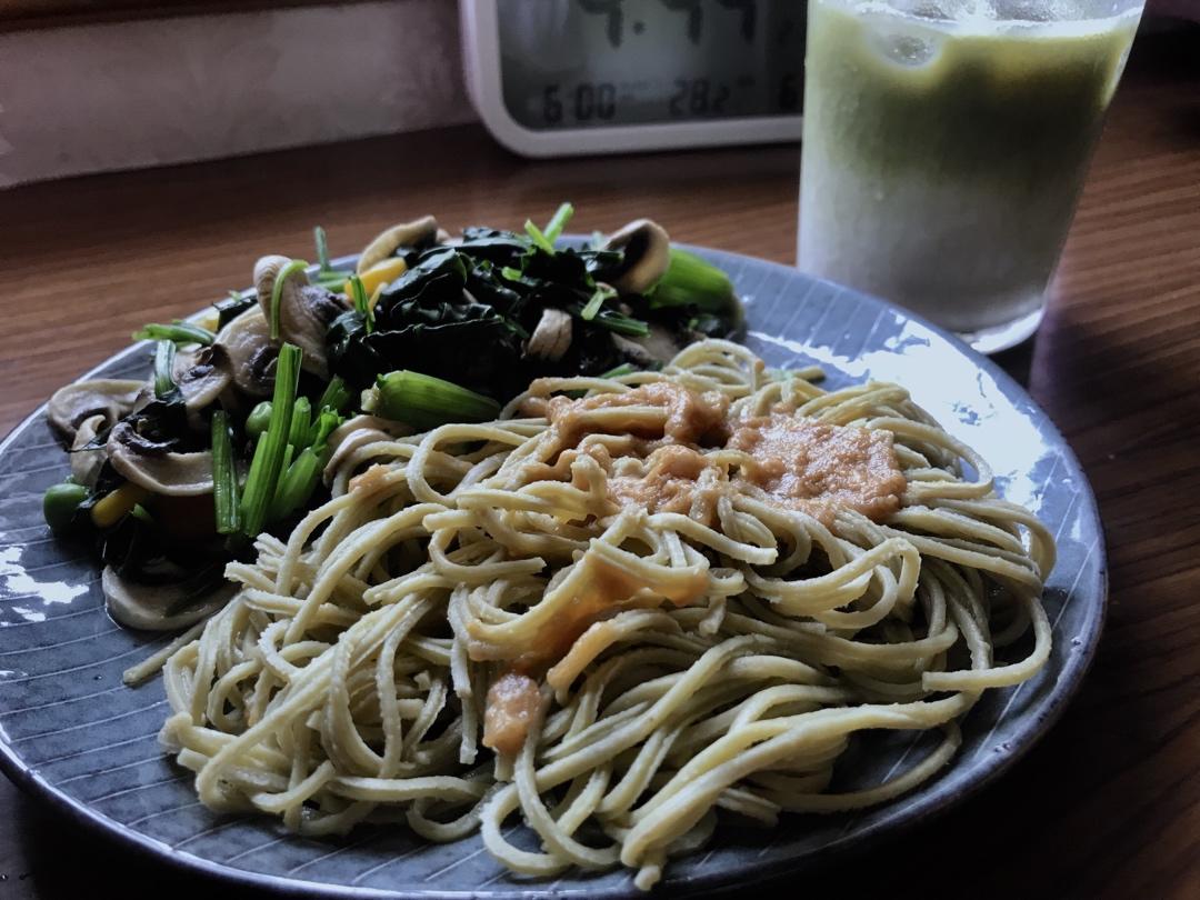 桃子要乖 做过 晚餐•2020年5月17日 #晚餐•2020年5月17日# 今儿个成功退酮啦,碳水真美好~~~中午吃了肉桂卷晚饭是花生酱拌毛豆意面,口蘑菠菜杂蔬炒炒,冲了杯渐变抹茶拿铁 2020-05-17