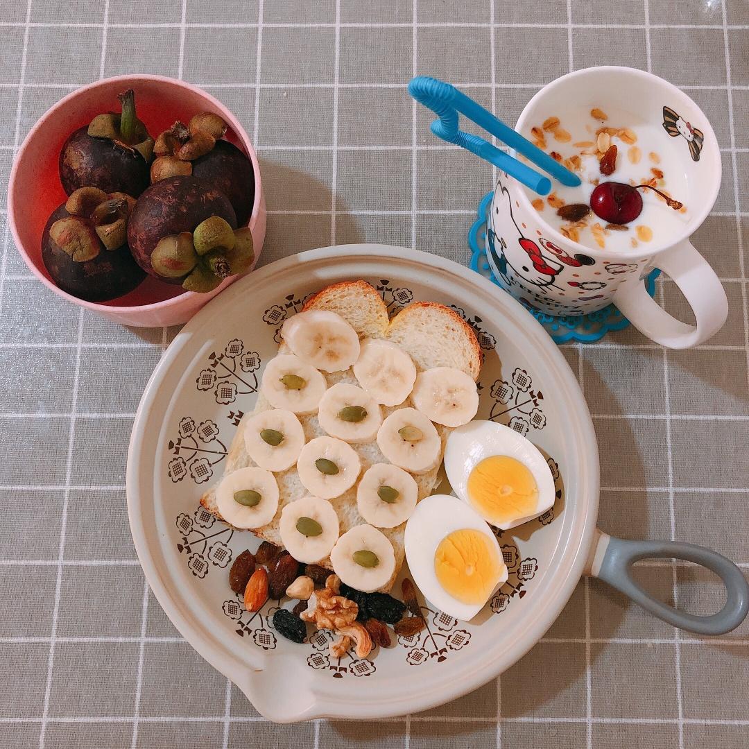 女神Goddess 做过 🍓三餐,减脂餐,早餐(持续更新) 早餐:开放式香蕉🍌坚果吐司🍞➕水煮蛋🥚➕酸奶燕麦➕山竹➕坚果午餐:香蕉🍌➕樱桃🍒➕豆芽炒虾仁🍤晚餐:杂粮馒头➕煎豆腐➕蒜蓉油麦菜#减脂健康餐# #便当# 2020-06-16