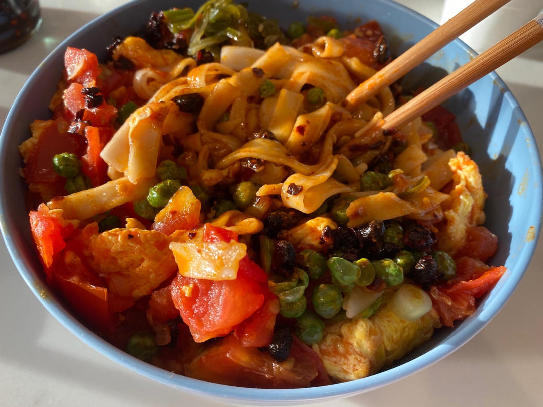 加了几勺老干妈,和一包台湾青豆,无敌好吃😋