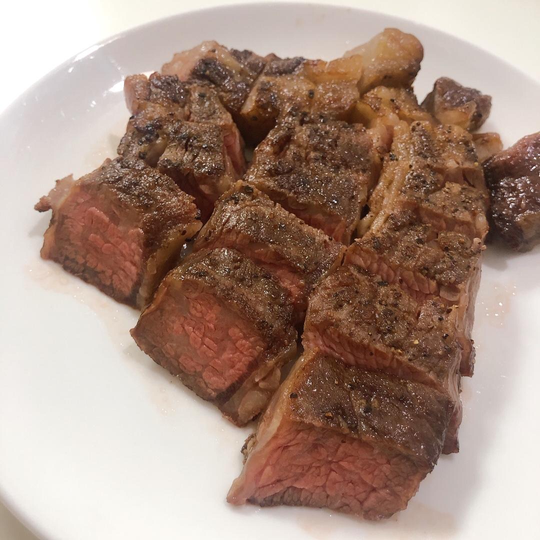 2.煎锅烧热,每面煎约40秒,此时肉心温度约63