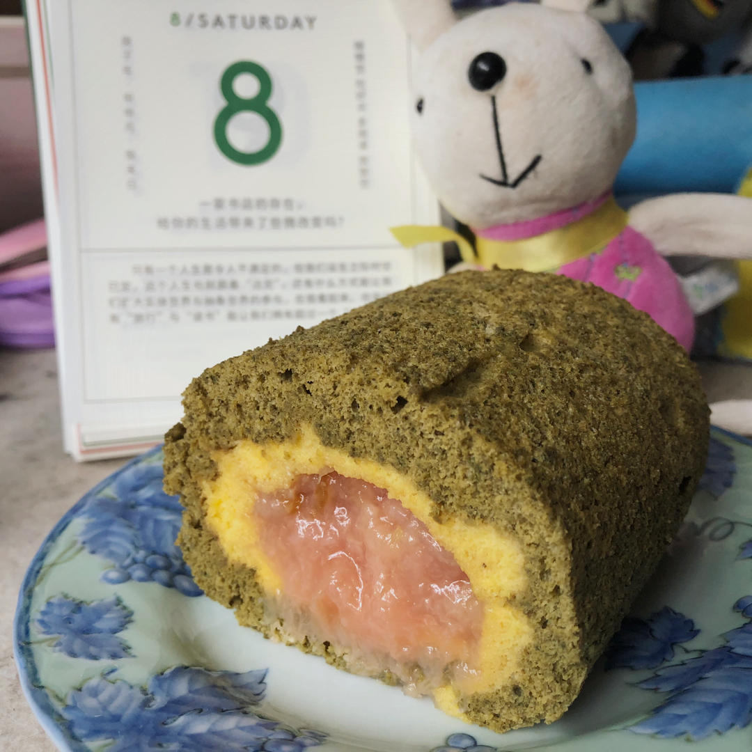 唯一的缺憾是,本来想做抹茶旋风卷的,旋风又失败了降格成双色卷🙈。。不过一样好吃!(终于不再是用艾草粉代替抹茶粉的颜色了😝茶香和果香超级配呀!!)