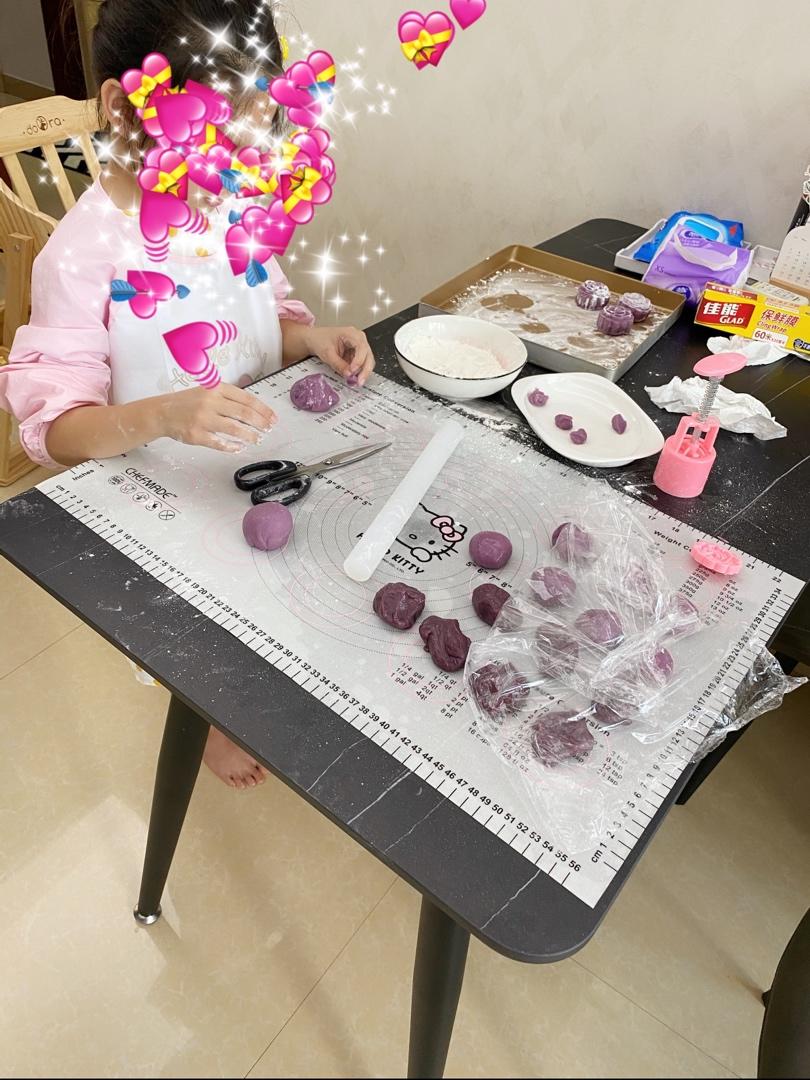 带着娃在家随便做了一盘,奶香芋泥馅,冰皮方子特别好,我用微波炉叮3分钟拿出来揉揉揉就能用了,新手建议还是蒸锅