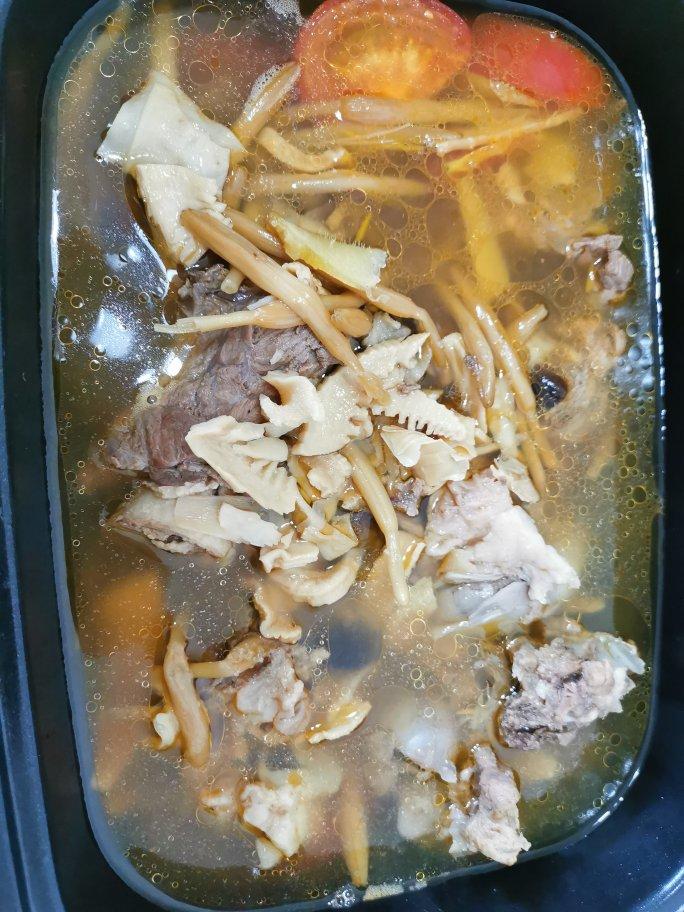 42块钱的猪骨头高压锅压了20min做汤底,搭上喜欢的蔬菜、丸子类,简单的美味😋,七寸的培根香肠披萨饼,晚餐美美哒🙃