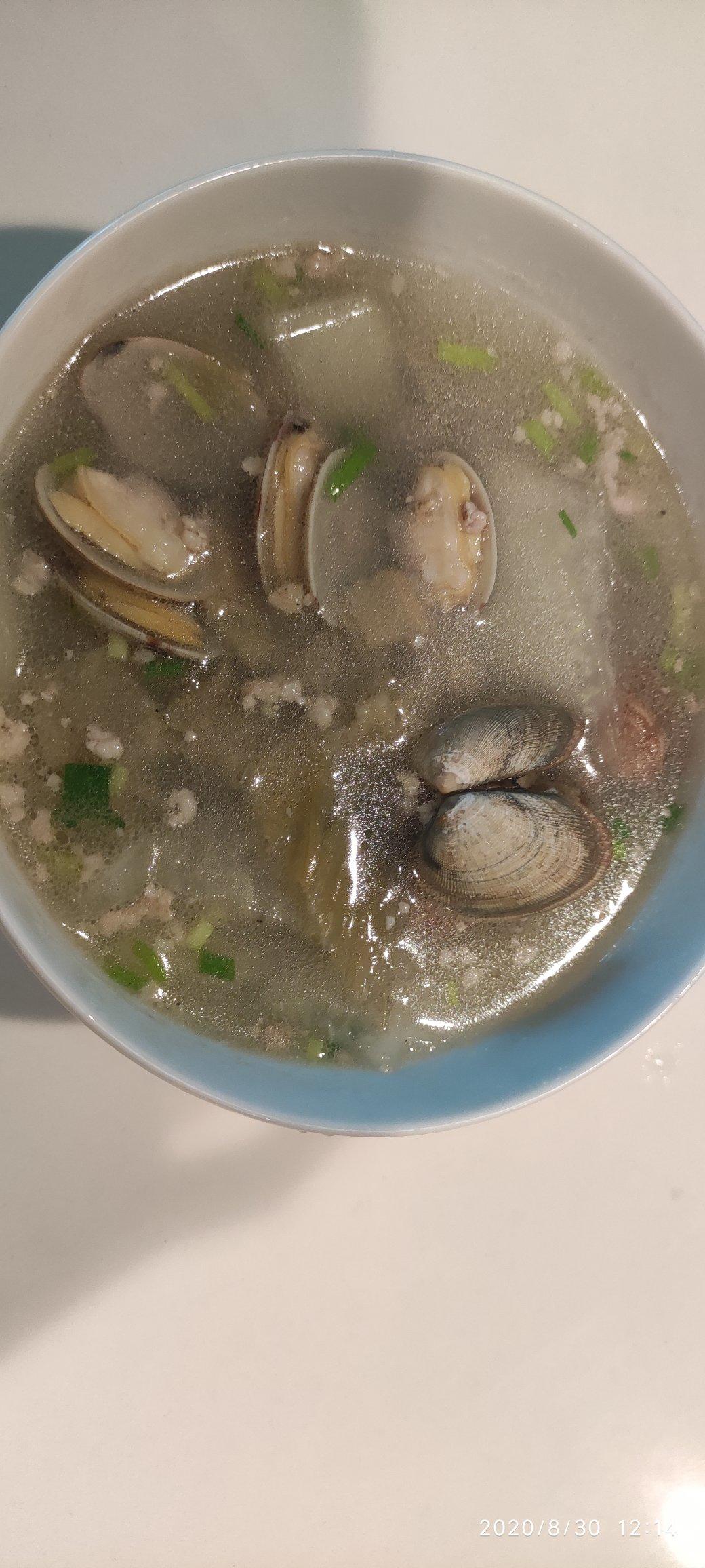 溪边笨厨娘 做过 2020年08月30日 海南的冬瓜白蛤汤非常清淡。这一版是北方口味的,姜丝少许油炒香,加入猪肉末,快速炒至变色,加适量开水之后,水再开后加入冬瓜片,冬菜大约七八片(很咸,当盐用,提鲜),再加入花蛤煮几分钟到花蛤打开关火,撒入小香葱碎,即可。我喜欢香油,再加上几滴。快手大约五分钟,加预备最多共15分钟,好喝。冬瓜软,花蛤鲜,肉末香。抓住夏天的尾巴~ 2020-08-30