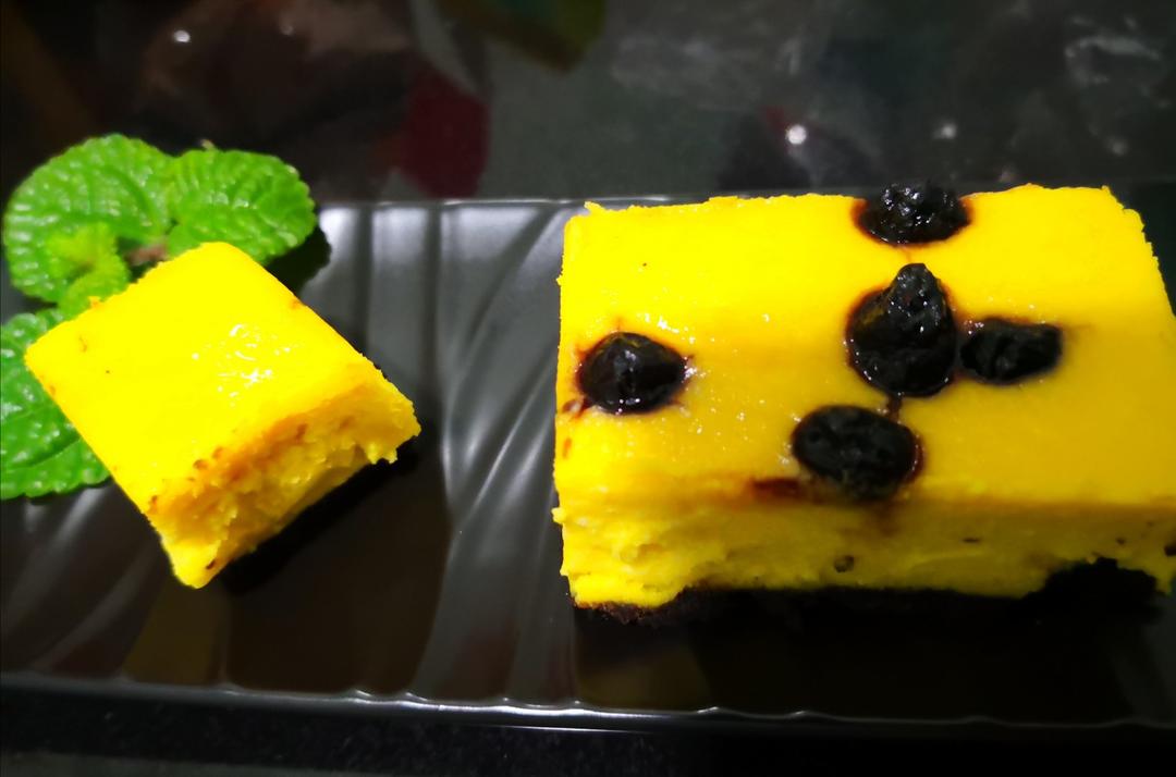 甘肃南瓜蓝莓酸奶芝士蛋糕~~丝滑般口感,随手配的料,非常好吃!