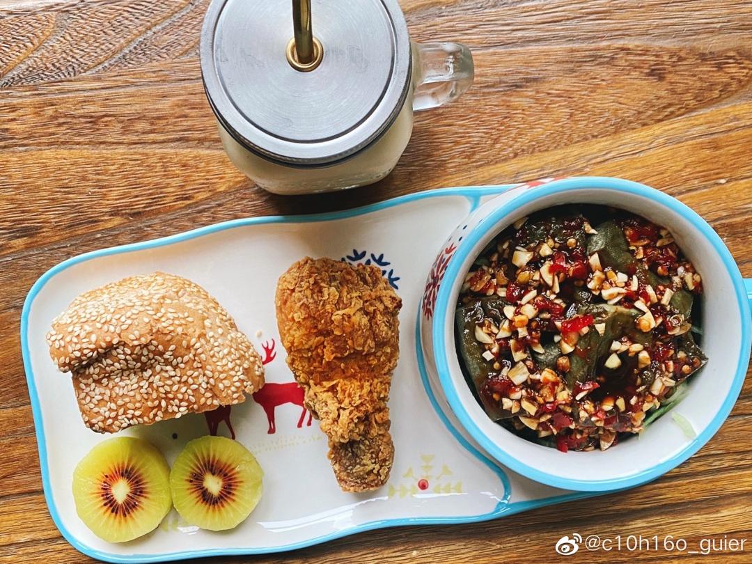 芋泥奶酥麻薯软欧&红心奇异果&K记脆皮鸡&泡椒包浆豆腐&冰拿铁☕️。