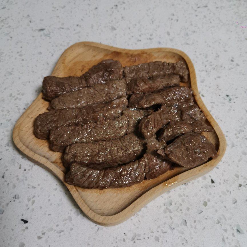 菲力牛排切块煎好,番茄酱+一点点盐+一点生抽+一点黑胡椒粉+一点蒜蓉辣酱+一点淀粉+水,炒浓稠,涂在牛排上,小朋友很喜欢