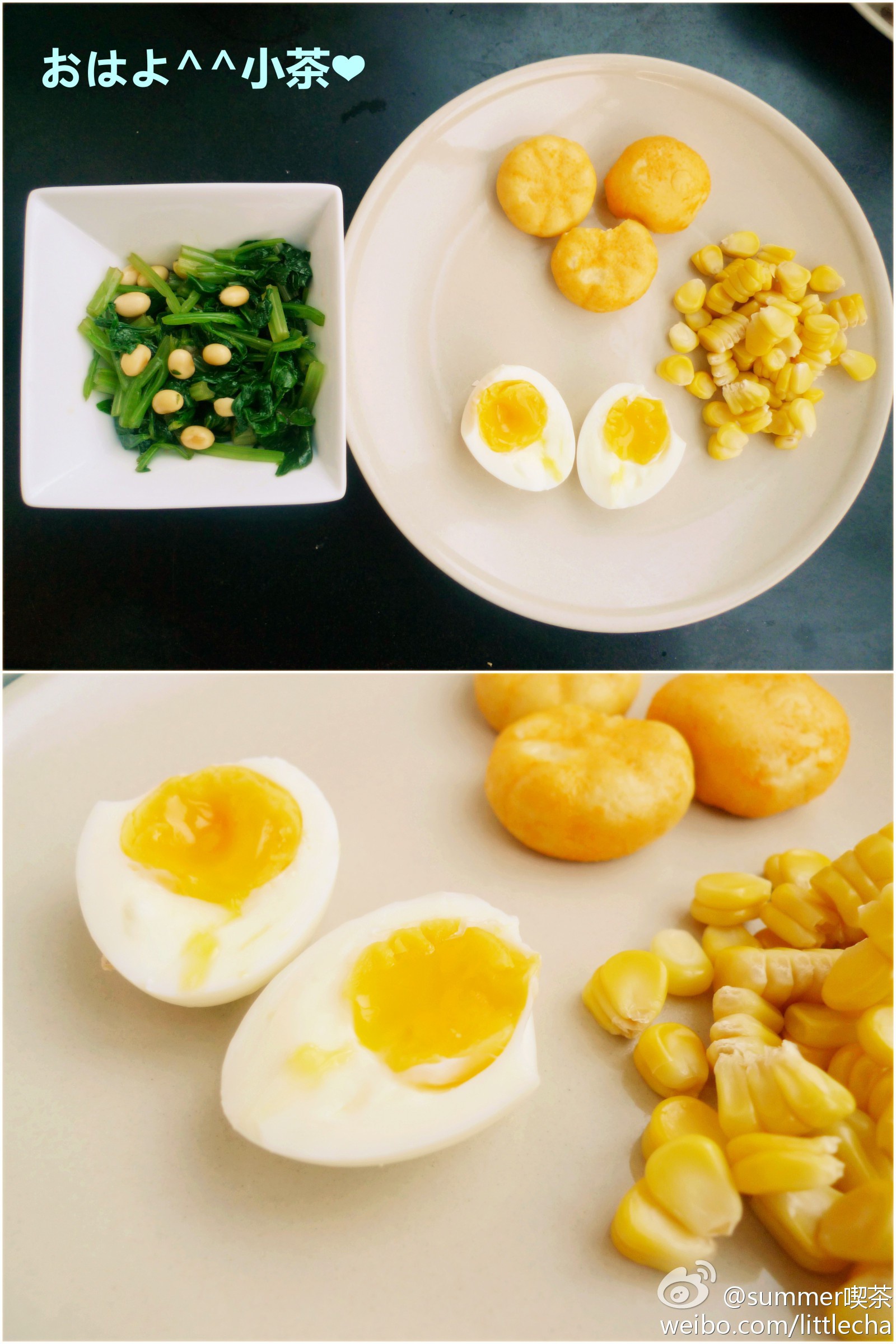 南瓜饼,果甜玉米粒,芹菜黄豆拌,溏心蛋~~性感溏心蛋才是主角有木有?~^_^