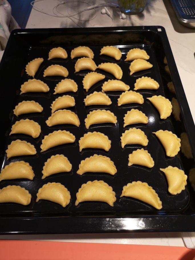 bigcup 做过 年味『角子、蛋散、麻圆煎堆』 没有中筋面粉,用了150克高筋面粉,150克低筋面粉,90克猪油,100克左右的啤酒,一个鸡蛋,和成一个软面团,最终做了55个油角(含三个小太阳)。油温160度慢炸。成品酥松,不是太脆,但是口感还是不错的#早餐•2021年2月11日# 2021-02-11