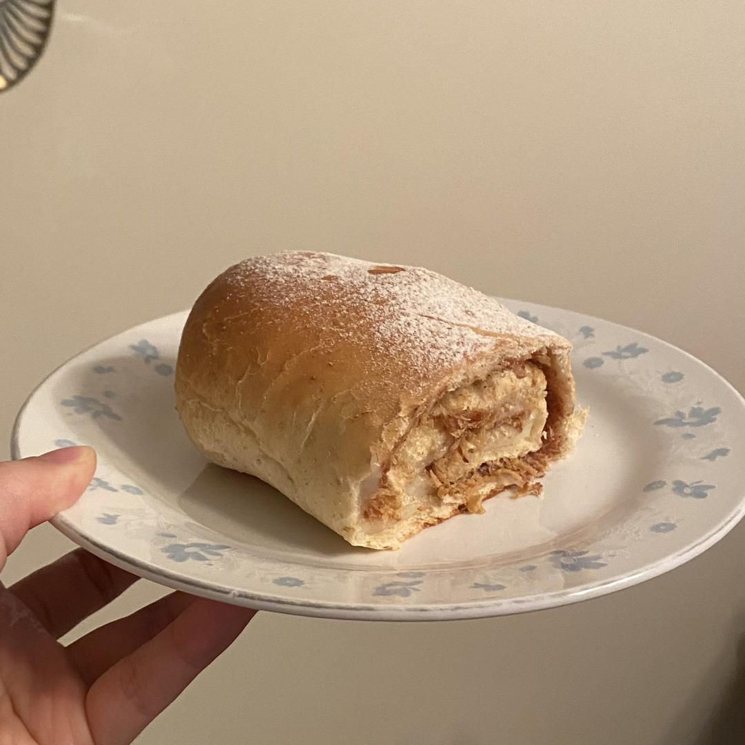 参考了几个麻薯肉松软欧包的方子,面包体都太高糖了。这个方子面包体6%的糖粉比非常适合高甜馅料的软欧包了!整体吃上去不会齁甜,是很合适的甜度!麻薯全用了感觉有些多,也可能是我自己塑形的问题,以后还做的话再研究研究。