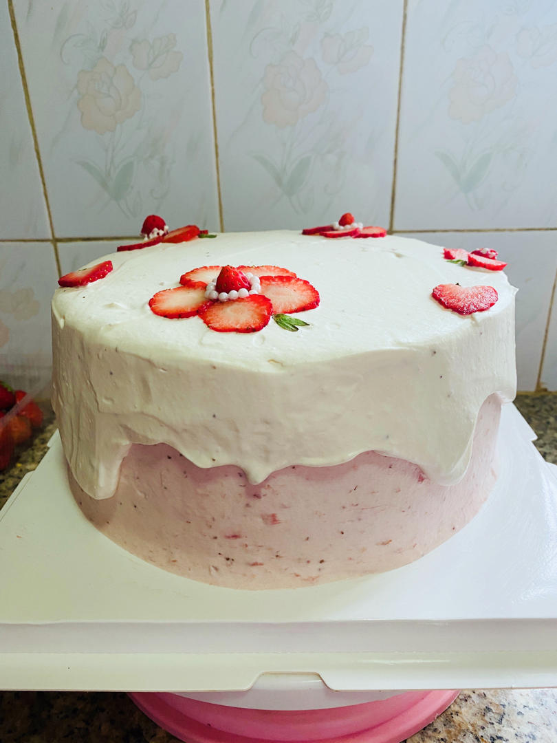 没有色素的粉色草莓蛋糕