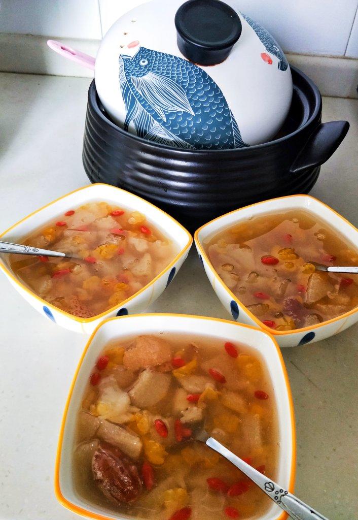 xiaoyuff 做过 2021年03月14日 清热润肺, 酸酸甜甜,Q弹滑糯的小吊梨汤。 材料:新鲜金木耳半朵,梨3个(最好用雪花梨),枸杞1把,话梅4粒,冰糖几粒;做法:梨用盐擦净,削皮,切块,同金耳、话梅、冰糖一起煮1小时左右,起锅前加枸杞稍煮下,吃的时候去除梨皮,加桂花糖即可。 2021-03-14