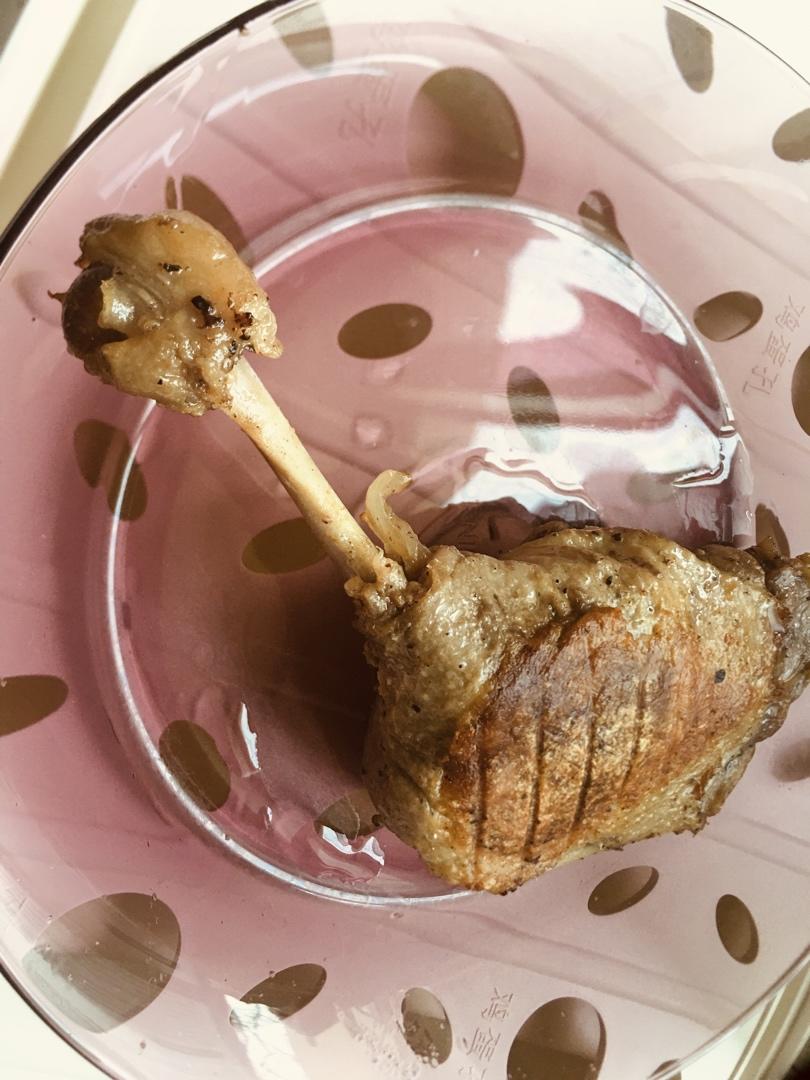 GraceYH 做过 油封鸭腿笔记 by pink-rabbit #午餐•2021年3月25日#第一次做,腌渍36小时,咸味有点淡,味道是极好的,鸭腿用的正大樱桃谷鸭,低温慢烤后肉质酥烂,皮就略显薄,铸铁锅煎容易粘皮,电饼铛煎就很棒 2021-03-25