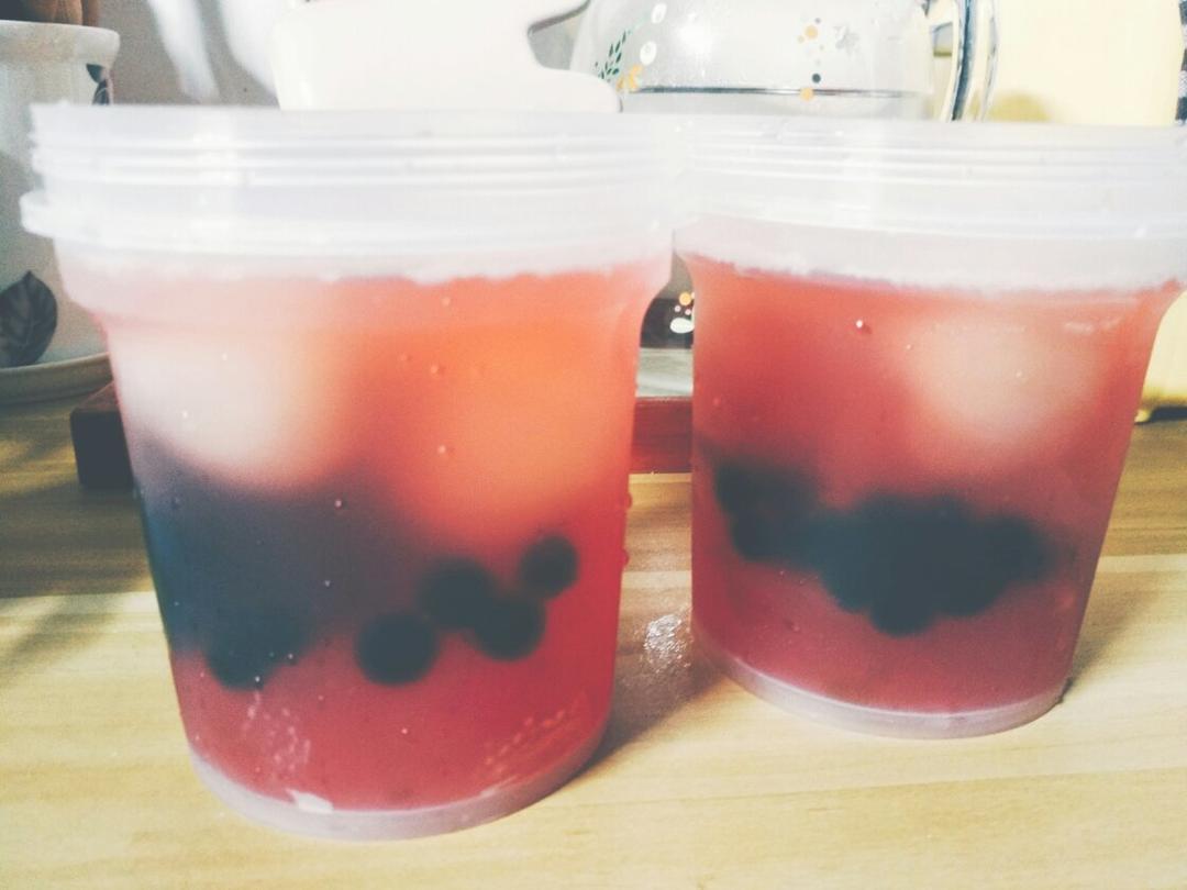 荔枝杨梅饮。杨梅冻+荔枝+珍珠+冰镇杨梅汤