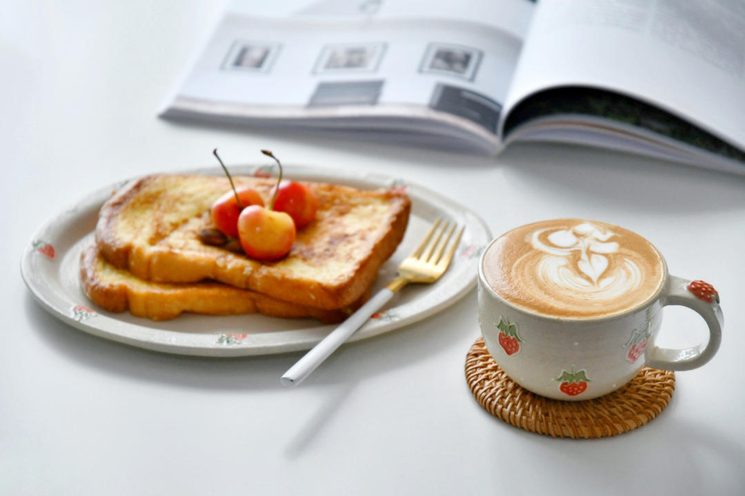 joyce-12 做过 Classic French Toast 经典法式吐司 椰香法式吐司用椰奶代替了牛奶 再撒点椰蓉奶香椰香都有了哈哈今天想拉一杯玫瑰然而手不听话啊啊这已经是失败的第二杯了 就这样吧🤣#早餐•2021年6月28日# #拉花小白练习中# 2021-06-28
