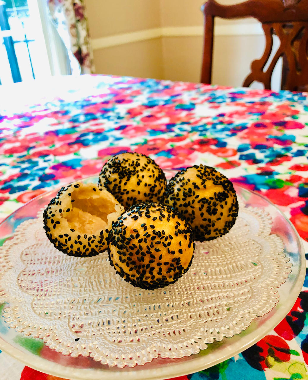 买了个手掌大的小锅 于是做了芋泥馅儿的空心麻团 啊哈哈