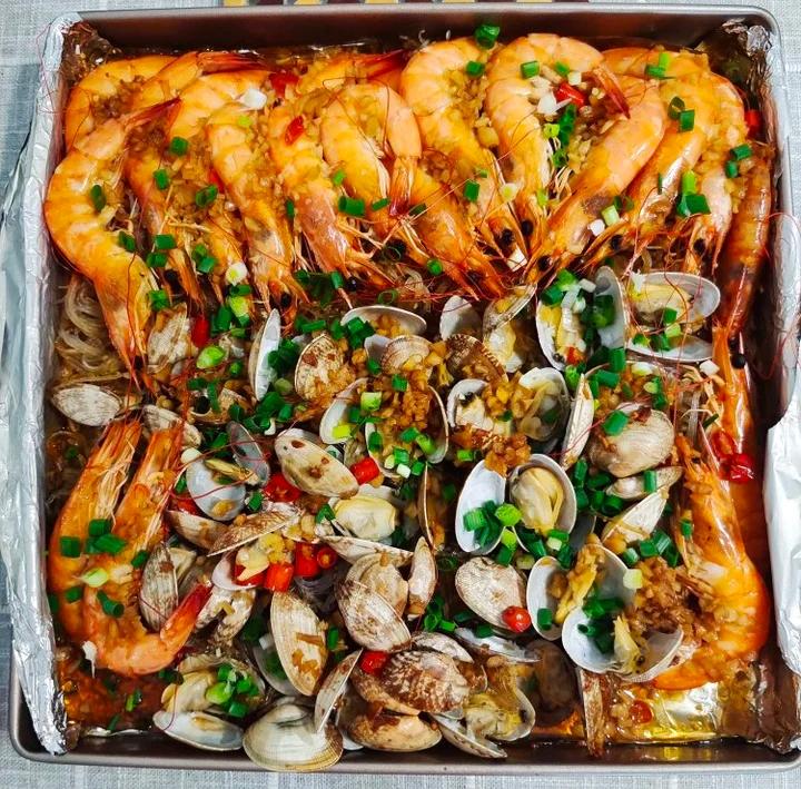 蒜蓉粉丝烤花蛤虾(烤箱版)
