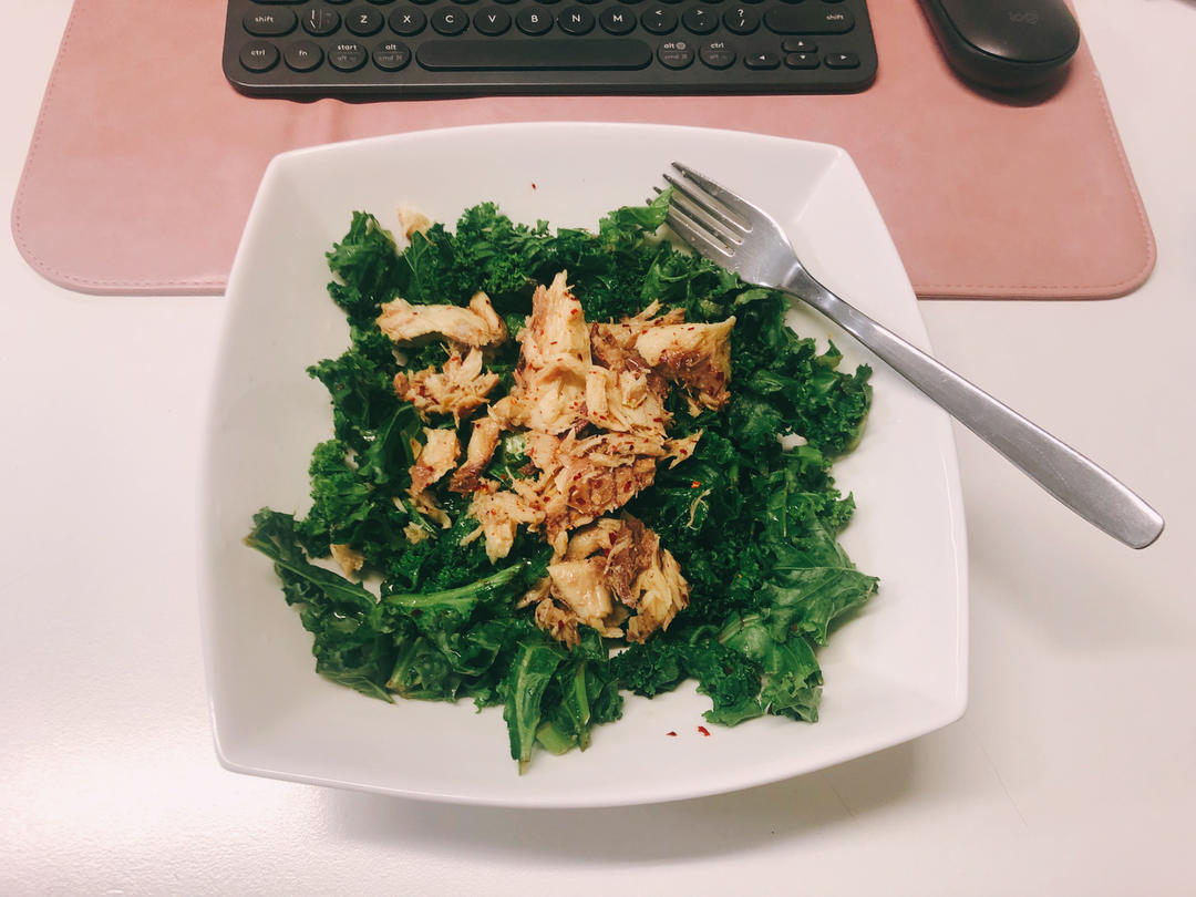 实验室极简沙拉又上线了,今天是mackerel➕kale,还挺好吃的