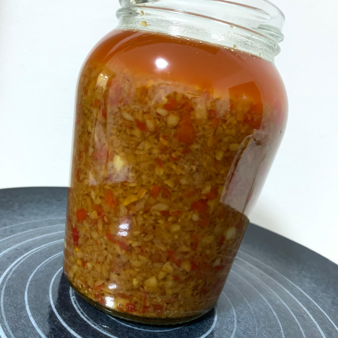 Uu的小菜单 做过 豆豉蒜蓉辣椒酱 ✔︎微辣版蒜蓉辣椒酱🌸不是超能吃辣的,按这个比例做出来的是微辣。辣椒和蒜蓉比例1:3,辣椒50克,蒜蓉150g,姜20g,花生油200g,刚好一瓶✌🏻 2022-01-06