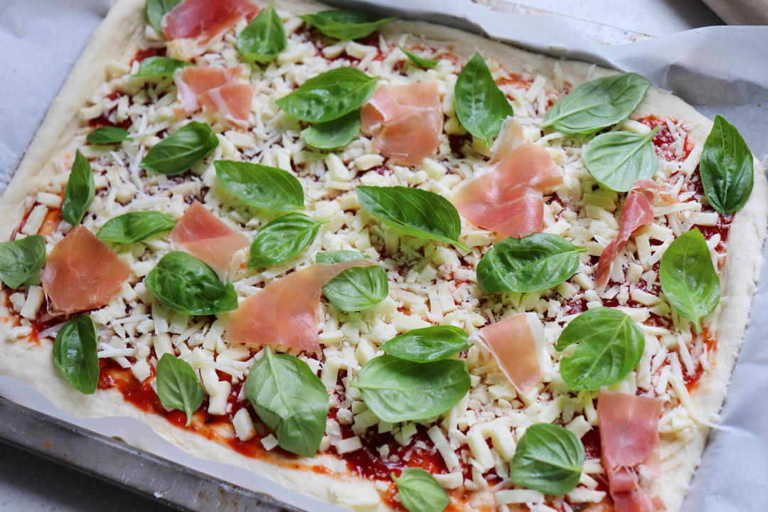 用这个方子的饼底做了玛格丽特披萨,好吃~