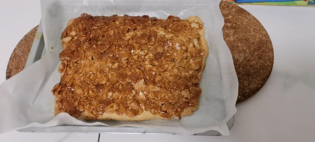 饼干底,糖减半。熬糖是关键,时间要久一点,小火慢慢来,不喜欢太甜的,还可以减糖。绝对是杏仁酥里的天花板。