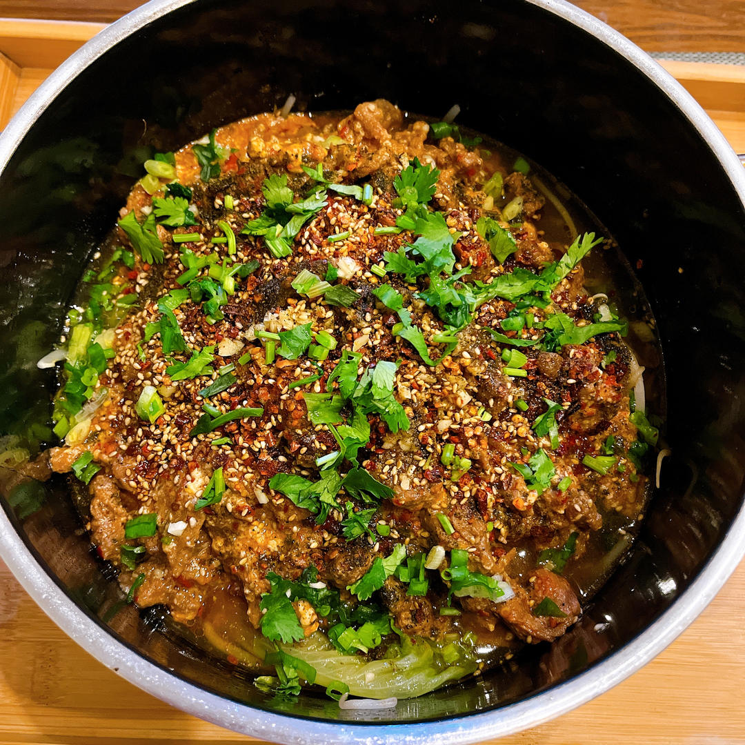 5、最后一步青花椒粉是泼过油才放的,这次放错了,不过问题不大。