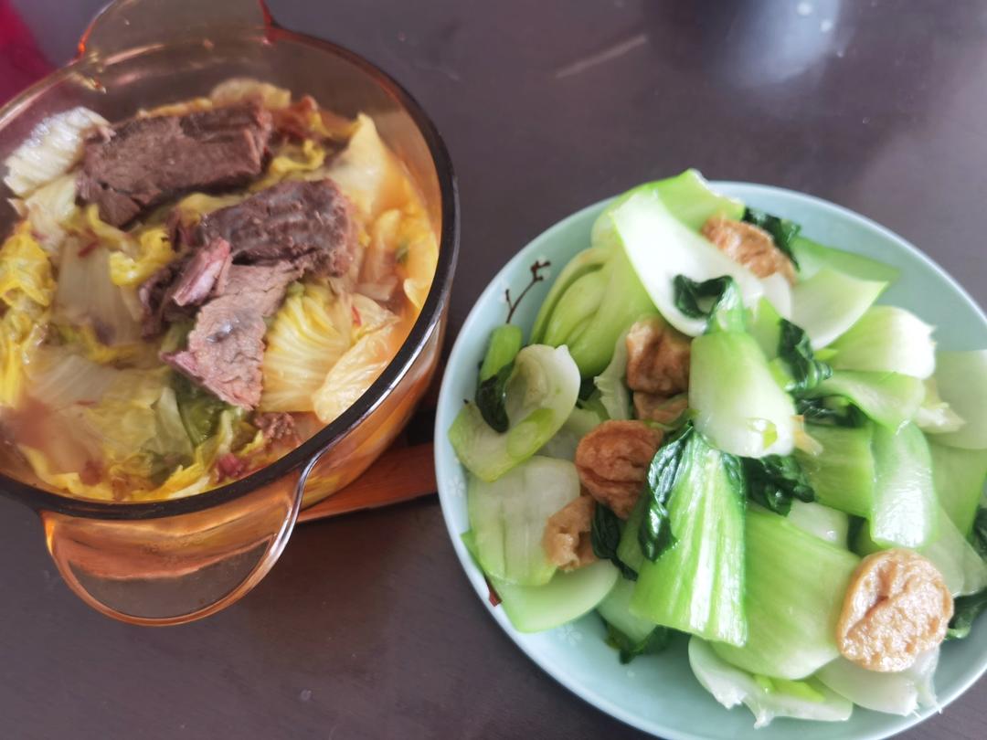 牛肉烧白菜、油面筋小青菜