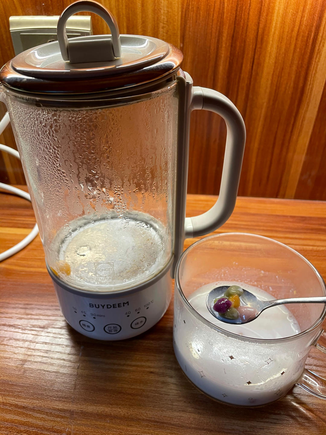 米立Studio 做过 韩式酱鸡蛋【3月北鼎养生壶食谱】 #午餐•2022年3月23日# #2022、# 3月打卡第7天——牛奶芋圆用料:水、迷你芋圆、牛奶锅具:北鼎养生壶北鼎mini养生壶内放入500ml水和迷你芋圆,精煮模式10分钟,煮熟后滤干水分,加入牛奶即可。 2022-03-23