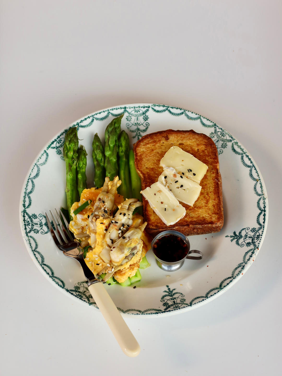 蛏煎蛋➕白灼芦笋➕蛋煎吐司➕奶酪