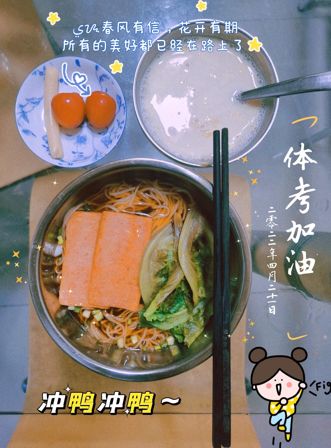 2022.4.21.阳春面+煎午餐肉+豆浆+鳕鱼肠+小番茄