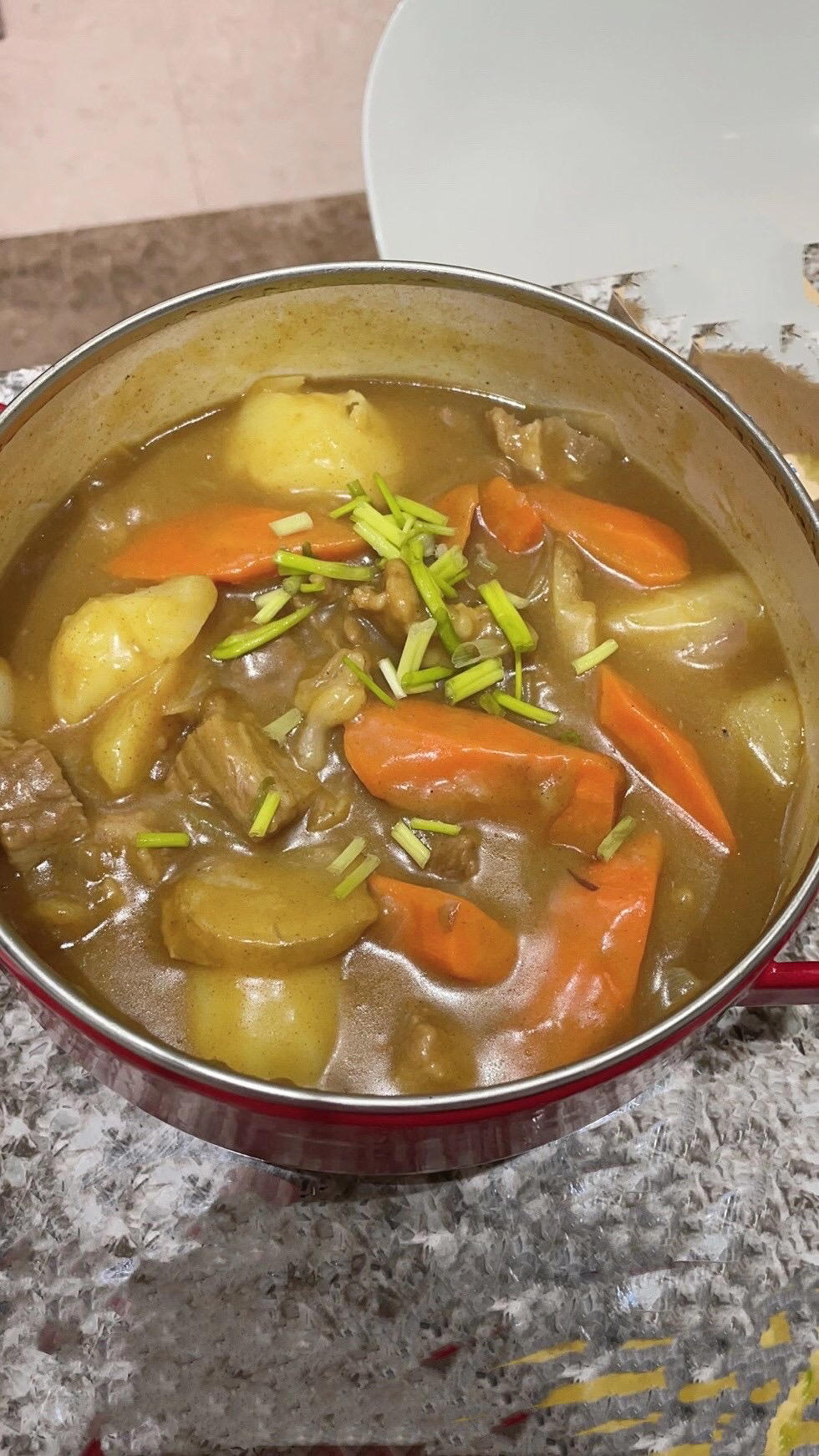 终于~~理解了为什么很多孩子喜欢吃咖喱的菜了[色][色],第一次操作“咖喱牛腩”还是非常的成功[调皮][哇][哇]